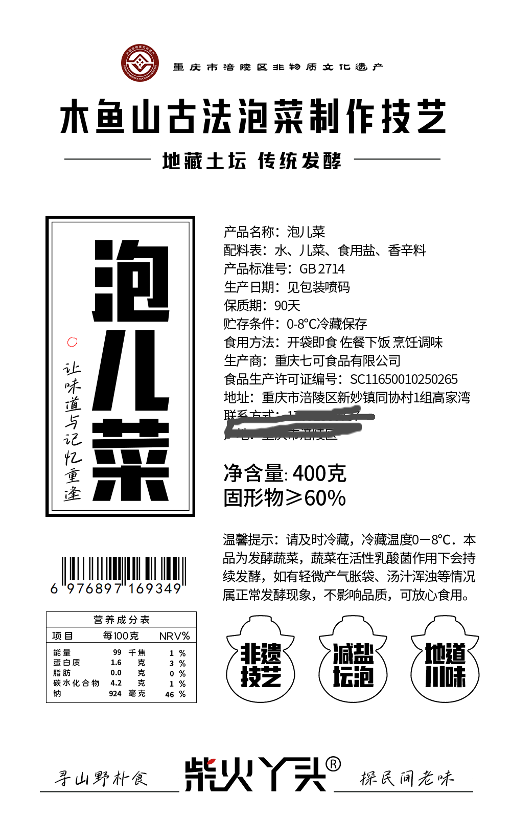 柴火丫头泡儿菜400g(固形物60%)