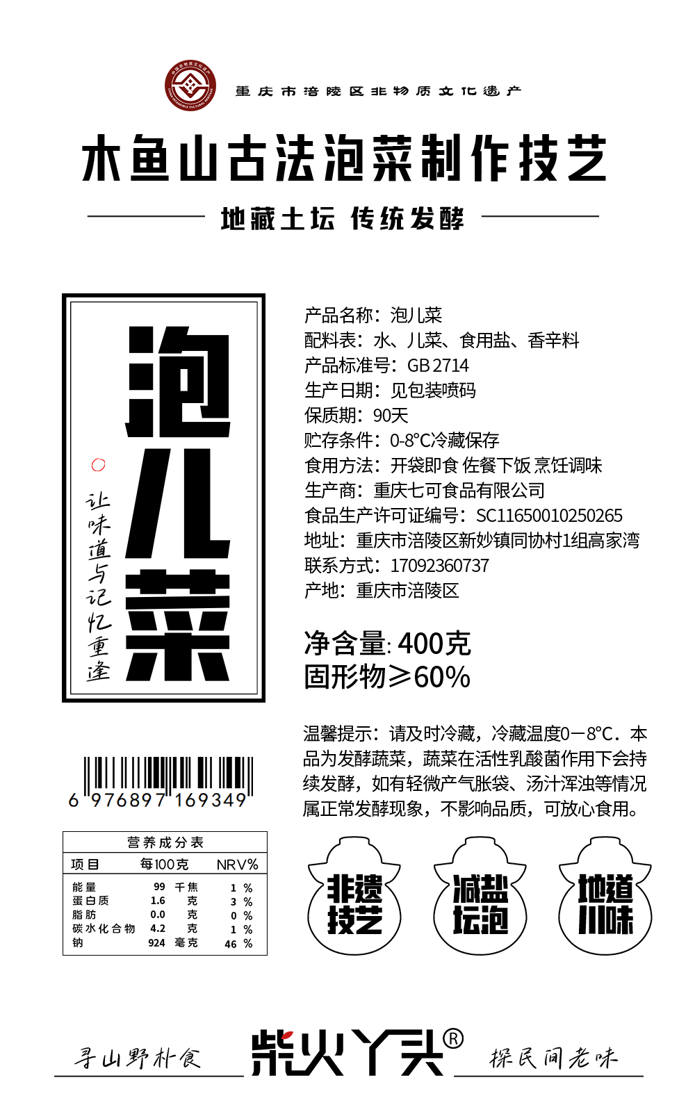 柴火丫头泡儿菜400g(固形物60%)