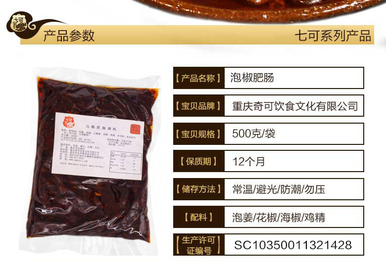 七可泡椒烧猪肥肠调料 500g
