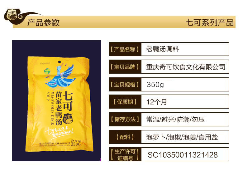 重庆七可苗家酸萝卜老鸭子汤350g